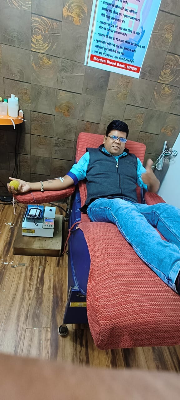 Education Secretary of DASSKM Mr. Sumant Niware donated blood today at Dr. Ambedkar Nagar (Mahow )
