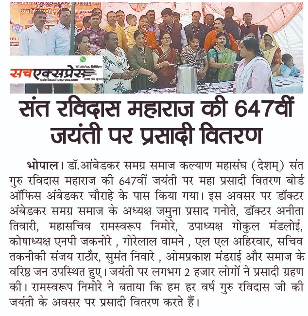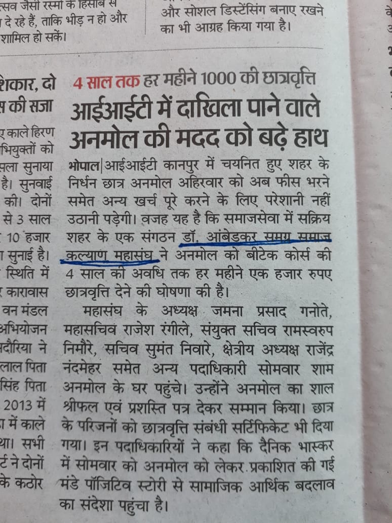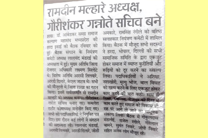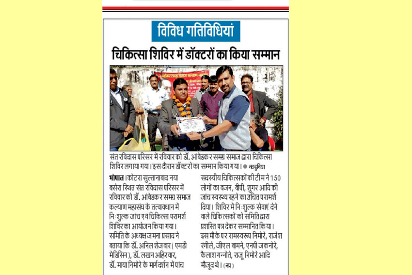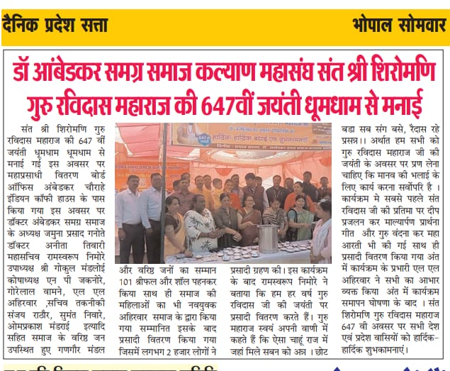 डा. अम्बेडकर समग्र समाज कल्याण महासंघ के द्वारा गत वर्षो में विभिन्न प्रकार के सांस्कृतिक, पर्यावरण संरक्षण, बच्चो के लिए मुफत शिक्षा का प्रबधं, बाबा साहब की जन्मस्थली महू का दर्शन इत्यादि । उन्हीं कार्यक्रम के कुछ झलकियां यहां दी गई है इसके आलावा विभिन्न समाचार पत्रो मे प्रकाशित न्यूज भी प्रदर्शित है ।